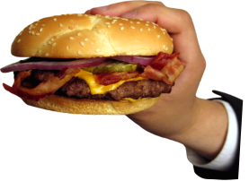 ( Σπιτικό μπιφτέκι, μαγιονέζα, κέτσαπ, τυρί, bacon, μουστάρδα, pickle sauce, ντομάτα και μαρούλι )