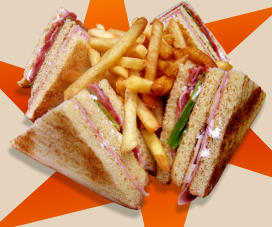 1. Κλασικό ( Ζαμπόν, μπέικον,τυρί, μαγιονέζα, μαρούλι, ντομάτα ) 2. Διαίτης ( Γαλοπούλα, τυρί, μαγιονέζα, μαρούλι, ντομάτα ) 3. Chicken ( Φιλέτο Κοτόπουλου πανέ*, μαγιονέζα, μαρούλι, ντομάτα )